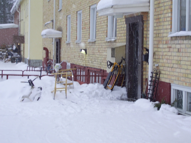 Tag 1 - verschiedene Stake-Outs, ein typischer Hauseingang, Transport des Schlittens locker an der Anhängerkupplung zum Einkaufen und das ganz normale Fahrradschloss in üblicher Verwendung..klar, oder?